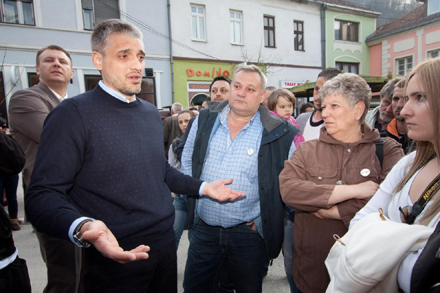 Lider Liberalno demokratske partije (LDP) i nosilac liste "Čedomir Jovanović Preokret" Čedomir Jovanović tokom izborne kampanje u Ivanjici