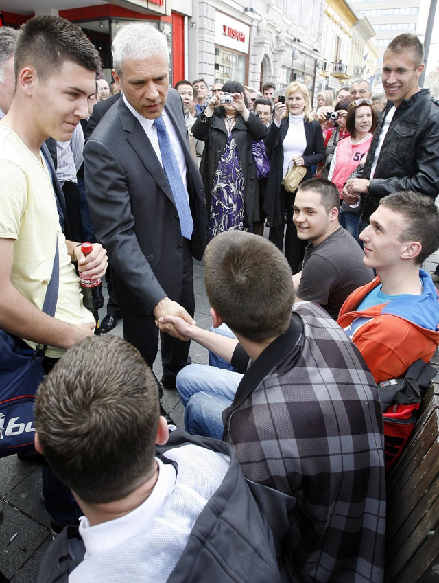 Predsednik Srbije Boris Tadić posle svečanog otvaranja Fabrike Mekaplast (Mecaplast), najveće francuske investicija u Srbiji u poslednje dve godine, u šetnji centrom sedišta Srednjobanatskog okruga