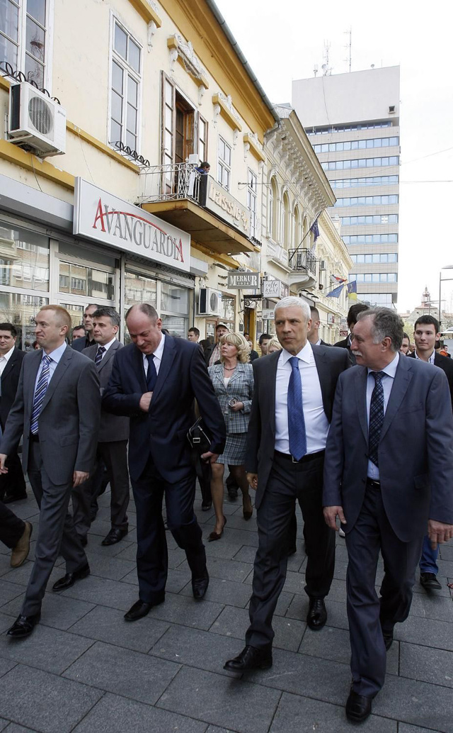 Predsednik Srbije Boris Tadić posle svečanog otvaranja Fabrike Mekaplast (Mecaplast), najveće francuske investicija u Srbiji u poslednje dve godine, u šetnji centrom sedišta Srednjobanatskog okruga