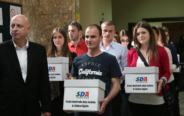 Predaja izborne liste Republičkoj izbornoj komisiji Stranke demokratske akcije (SDA) Sandžaka - dr. Sulejman Ugljanin za opšte izbore zakazane za šesti maj 2012.