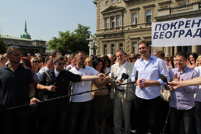 Konferencija za novinare Srpske napredne stranke ispred Skupštine Beograda