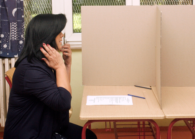 Kandidat Srpske radikalne stranke za predsednika Srbije Jadranka Šešelj glasa u Osnovnoj školi "Svetislav Golubović Mitraljeta" u Beogradu