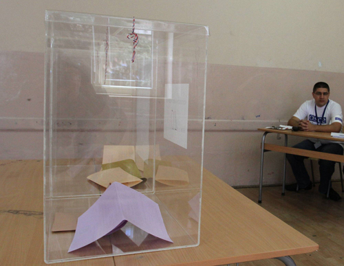 Biračko mesto za republičke i predsedničke izbore u Osnovnoj školi "Sveti Sava" u severnom delu Kosovske Mitrovice