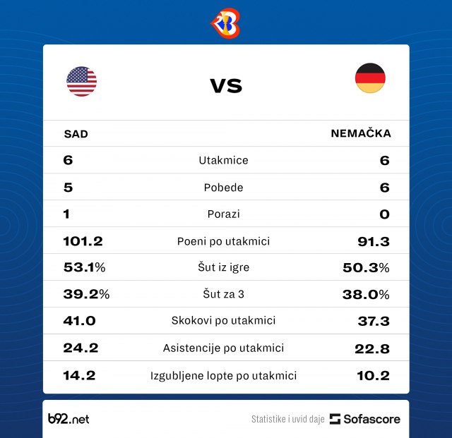 SAD dele samo dve pobede od rekordne šeste titule, ali se suočavaju sa izazovnim obračunom sa neporaženom Nemačkom.