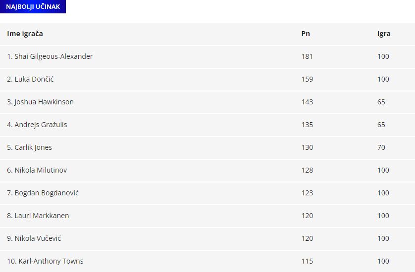 Što se tiče vodećih timova, i "Plavo bijeli" i "Gloubtroteri" se pred polufinale SP uzdaju u Šaja Gildžes-Aleksandera, te oba tima imaju u svom sastavu Luku Dončića, koga u subotu očekuje još jedna utakmica, u borbi za sedmo mesto.